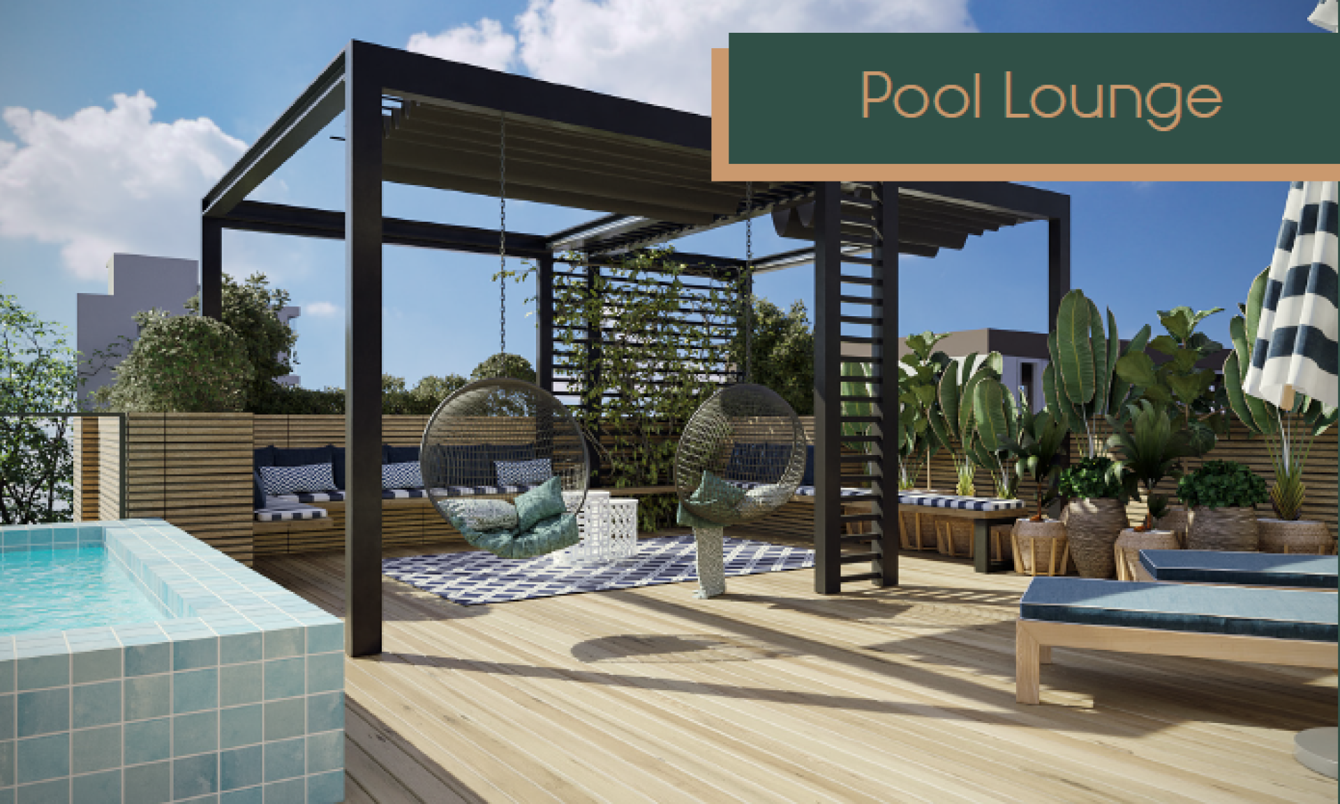Rooftop com espaço de churrasqueira, 52m de piscina adulto, infantil, prainha, hidromassagens e um bar incrível.