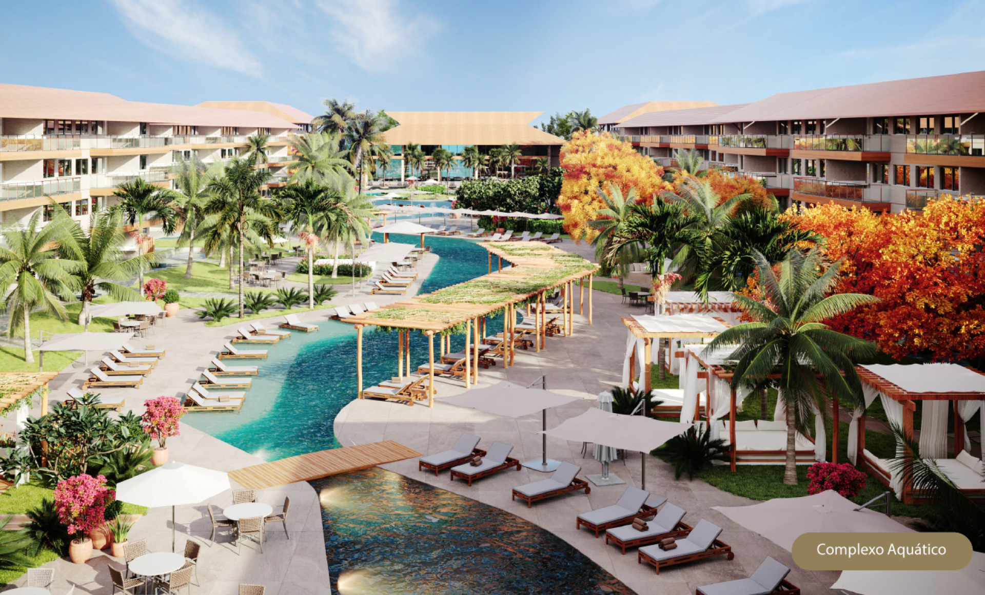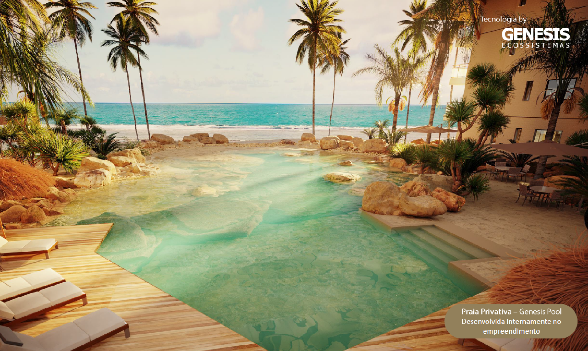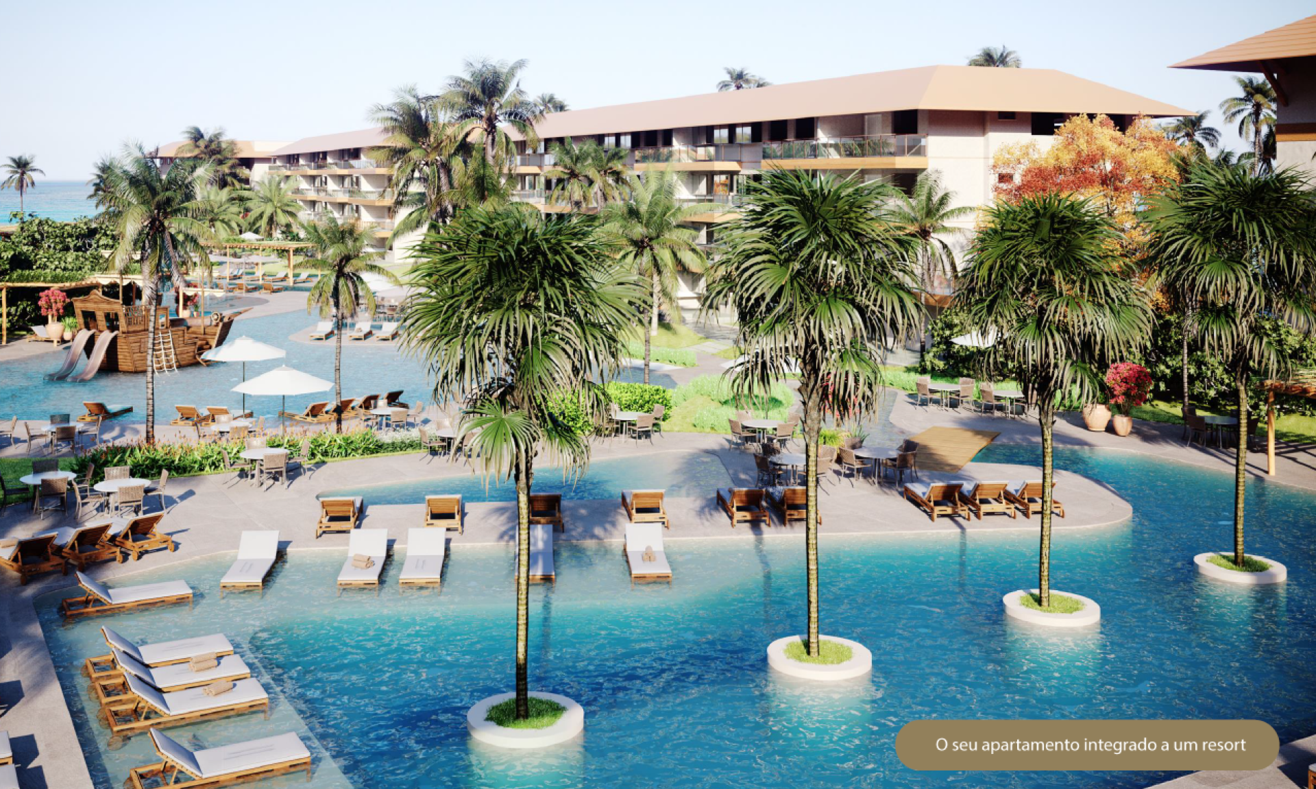 O condomínio oferece todo o luxo de um resort 5 estrelas, é beira-mar e possui uma área de praia artificial privativa, além de vários pontos de hidromassagens distribuídos no condomínio, espaços lúdicos para crianças, spa, lavanderia, restaurante de padrão internacional, quadras de esportes, academia totalmente equipada e uma recepção altamente capacitada para atendimento aos proprietários e visitantes.