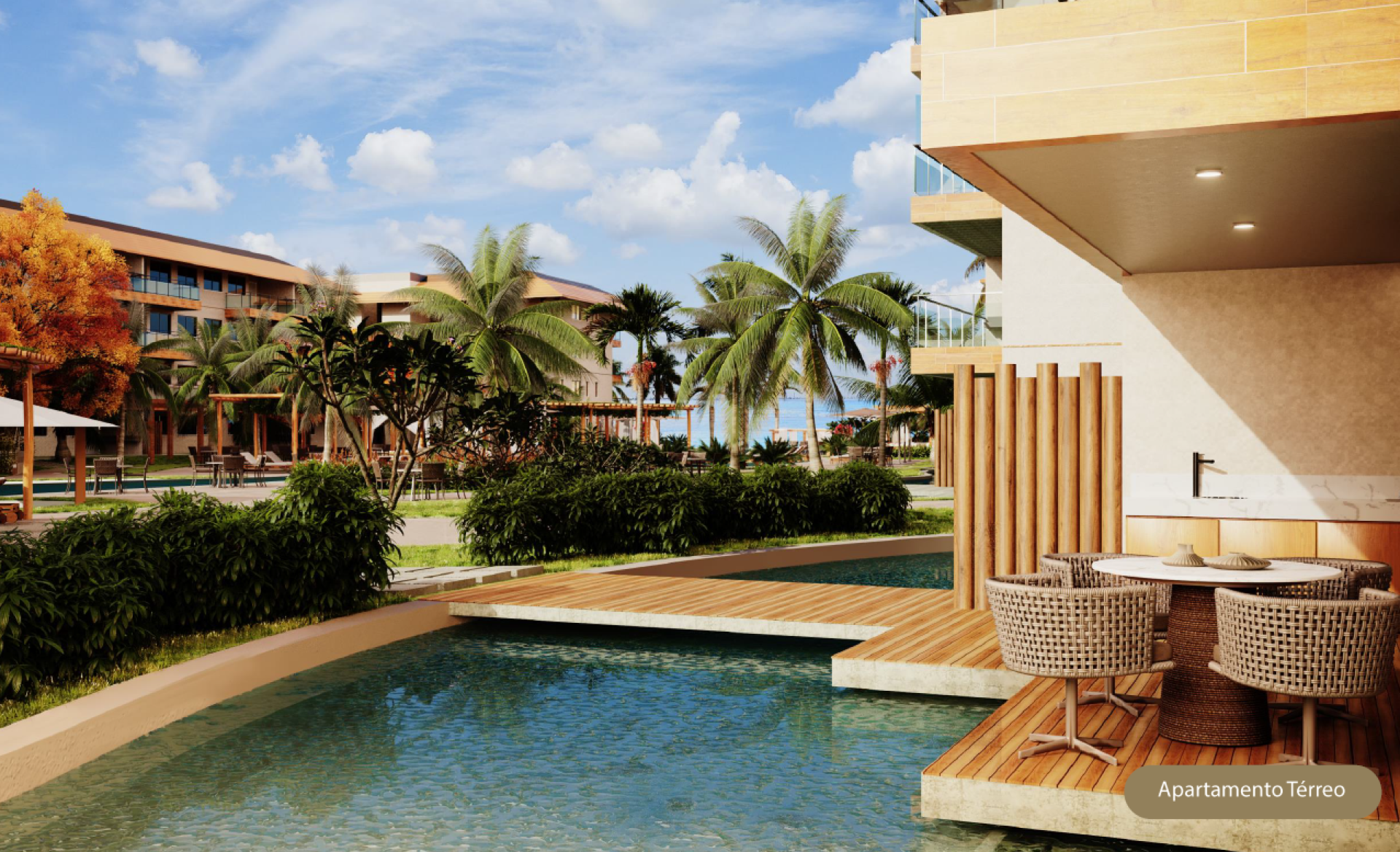 Na parte frontal do condomínio oferece uma vila com renomados restaurantes e uma aprazível praça para eventos.